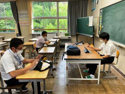今回は、豊田市役所と下山中学校、日本大学をZoomで結んでの接続実験でした。うまくつながり、情報交換ができました。