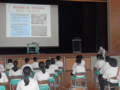 3年生は、午後から私立高校の説明会が行われました。夏休みには体験入学に行き、実際の高校を見て、今日は詳しい説明を聞くことができました。どの子も真剣に自分の進路と向き合い、積極的に質問をしている姿に感心しました。