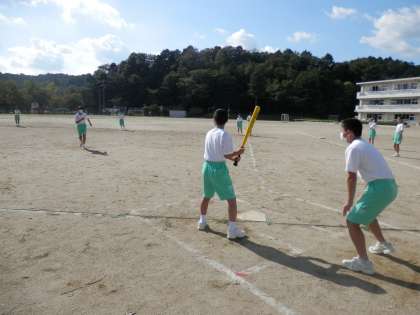 今日は3学年とも保健体育の授業がありました。3学年ともソフトボールの授業を行っています。1年生は「試しのゲーム」を行いました。3年生は「試しのゲーム」で気づいたことについて話し合いました。2年生は、「試しのゲーム」を終えて話し合って決めたルールでゲームを行いました。