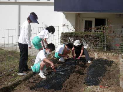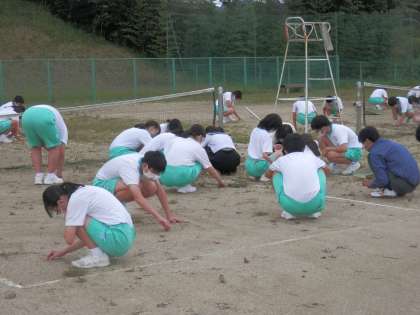 今日は予報が外れ午前中雨が降らなかったため、外での活動が進みました。体育はどの学年もソフトボールを頑張っています。ささゆりひまわり学級の畑も秋冬野菜に切り替わります。そして、清掃時間を使いテニスコートの草取りを行いました。団ごとに分かれ、黙々と作業をしていました。今後行われる秋の行事での活躍を予感する一日でした。