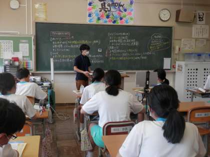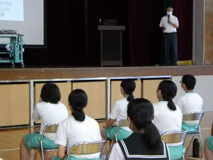 体育の授業では、各学年ソフトボールをやっています。練習を重ねるうちに、だんだんバットにボールが当たるようになってきたようです。3年生は公立高校の先生方に来ていただいて、高校説明会がありました。みんな真剣に話を聞いたり、メモを取ったりする姿が見られました。
