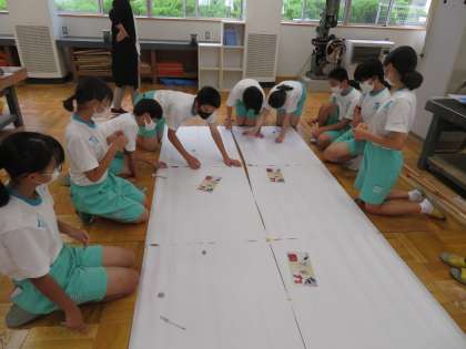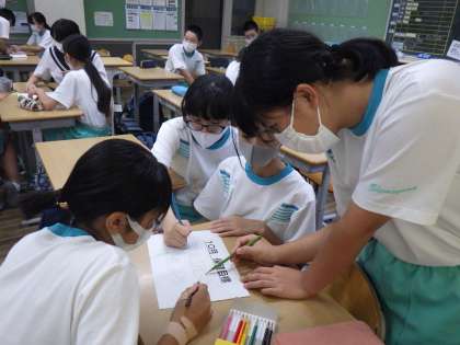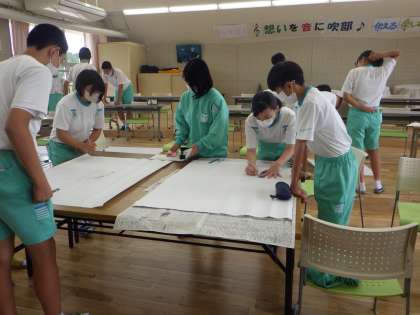 今日は下中タイムの時間に、文化祭に向けた団活動を行いました。団長の3年生を中心に作業を進めています。(写真1、2枚目)