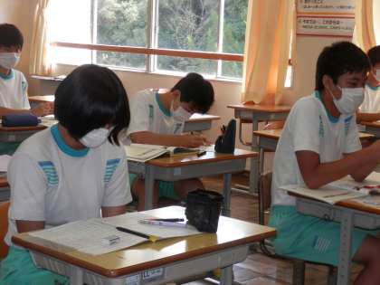 文化祭強調日課になりました。文化祭に向けてやらなければならないことはたくさんありますが、勉強も手を抜かずに取り組んでいます。1年生は保健体育科の保健分野の授業、2年生は社会科の授業、3年生は英語科の授業の様子です。
