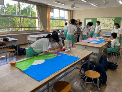今週から文化祭強調週間に入り、授業が終わった後、それぞれの団でアート作成をしています。どの団もテーマに合った素晴らしいアートを作成中です。完成が楽しみです。