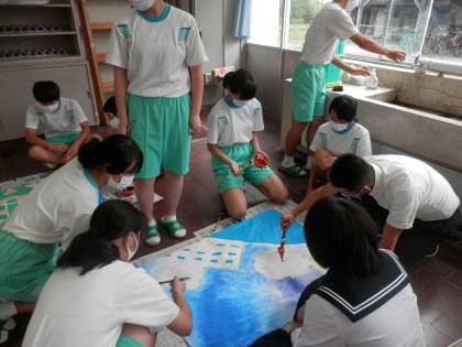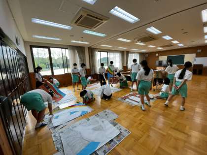 ささゆりでは、下山について調べたことをタブレットを使って発表していました。また、下中タイムでは昨日に引き続き団アートの作成を行いました。どの団も完成が近づいてきています。文化祭でのお披露目が待ち遠しいですね。