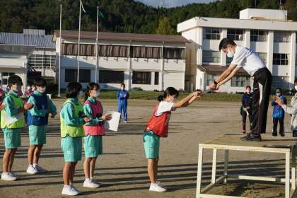 10月26日 ハンドベースボール大会 公開日 2021/10/26 更新日 2021/10/26 学校行事 午後に、団対抗のハンドベースボール大会が開かれました。当日の準備や進行を、団長・生徒会役員が中心となっておこなってくれました。運動場からは、たくさんの笑顔や熱気が感じられました。試合の中でどんな好プレーやガッツあるプレーを見ることができましたか?