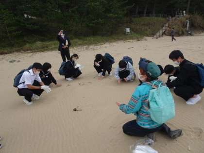 10月30日 修学旅行3年 文化体験・ビーチコーミング(琴引浜)