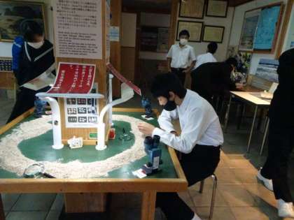 10月30日 修学旅行3年 文化体験・ビーチコーミングで集めた貝殻も使ってクラフト体験(鳴砂文化館) 館内見学も