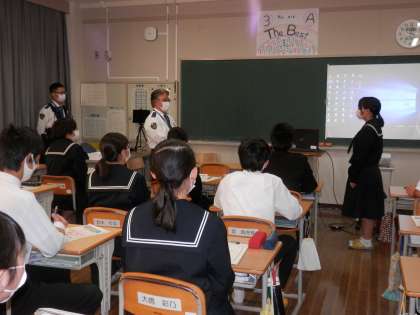 ささゆり学級では、英語科の学習で「What's this?」を行い、英語で何か言えるように練習をしました。2年生は、数学科の学習で、二等辺三角形の頂角の二等分線が底辺を2等分するのか証明して、定理を1つ自分たちで導きました。3年生は、薬物乱用防止教室で、自分たちにも大麻が近づいてくる可能性があることを知り、どうやったら防止できるのか自ら考えました。