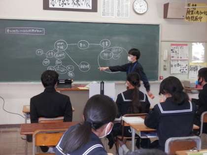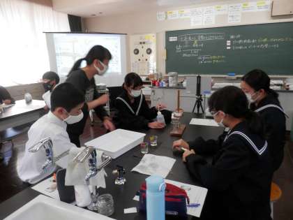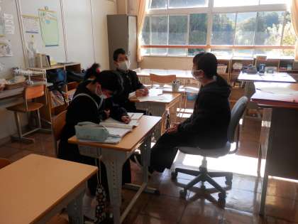 朝晩は冷え込み、昼間は暑いくらいの気候で、調子を崩す生徒も出てきています。体調には気を付けたいものです。今日は3年生が、修学旅行の代休でいない日です。授業の様子を紹介します。ささゆり学級の理科の様子(上)。2年生の社会の様子(中)。1年生の理科の様子です(下)。