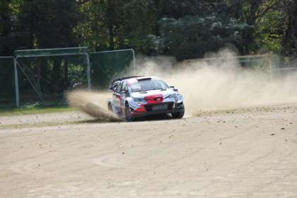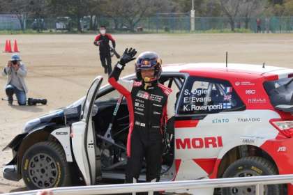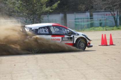 今日はWRCラリープレイベントが本校で行われました。トヨタのラリードライバーである勝田貴元選手に、目の前でドライビングテクニックを見せていただきました。ものすごいスピードと砂煙が立ち上るほどのドリフト走行は圧巻でした。