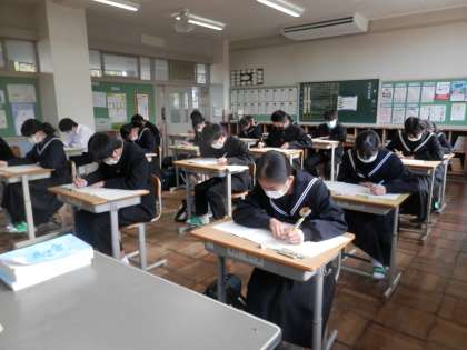 本日より後期中間テストが始まりました。生徒たちは真剣に問題に取り組んでいます。上から1・2・3年生の様子です。