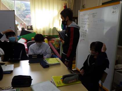 中間テスト2日目もよくがんばりました。テスト後には委員会活動を行い、1か月の反省や来月の目標、今後の取組について各委員会で話し合いました。
