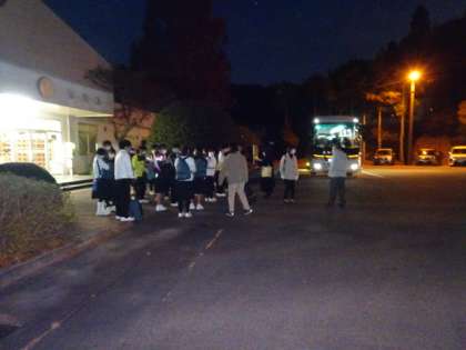 11月29日 修学旅行第2部3年 出発式 よく冷え込んだ朝になりました。