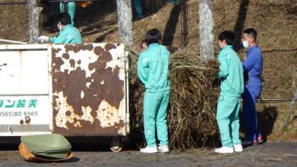 今日は掃除の時間に3年生が校門周辺の草の回収を行ってくれました。量が多く、刈り取った後なかなか回収できていなかったものですが、20分程度ですべて片づける健闘ぶりでした。