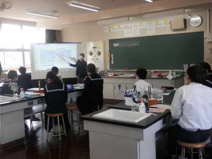 1枚目は1年生の理科の授業、2枚目は2年A組の英語の授業、3枚目は3年生の総合の授業です。