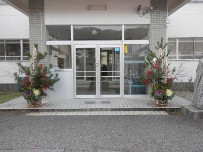 今年も職員玄関前に、立派な門松が飾られました。下山中学校では、毎年田平沢自治区区長の鈴木さんに、立派な門松を作っていただいています。来校された際には、是非ご覧ください。