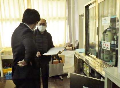 雪の中、学校薬剤師さんに来校いただき、後期の環境衛生検査をしていただきました。換気、照度、薬品管理、どれも正常でした。寒い冬が続きますが、今の調子で換気も気を付けていきましょう!