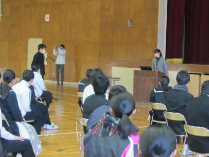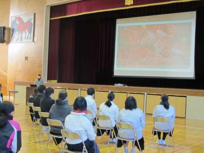 猟師であり、足助地区にある山里カフェ「Mui」を営む清水潤子様をお招きして、野生生物について講話をいただきました。害獣を狩ること、狩ったからにはその命に責任をもって頂くべきことなどお話いただき、里山と野生生物との共生について考えることができました。