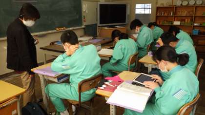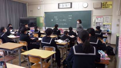 新型コロナウイルスの感染が拡大しているので、普段なら教科教室に移動して行う授業も移動せず普通教室で授業をしています。