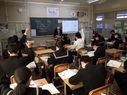 明日の節分に合わせ、給食に福豆が出ました。まだまだ寒い日が続きますが、春は着実に近づいてきていると感じます。生徒たちは今日も授業に積極的に取り組みました。