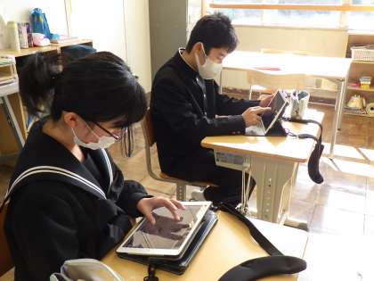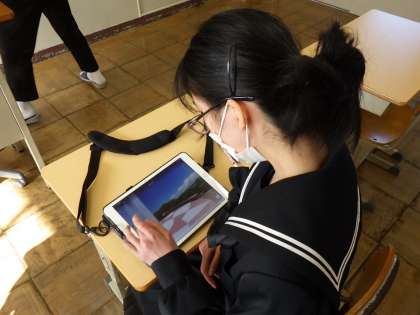 休み時間に学習用タブレットを使って、Googleearthで世界を旅していました。身近な下山から、遠くの果ての南極まで、指先一本で景色が見られるのはすごいですね!わくわくします!