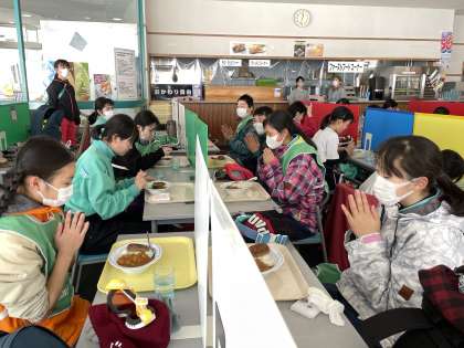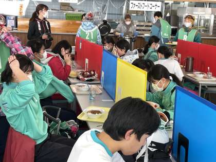昼食はカレーライスです!美味しくてみんなもりもり食べています。