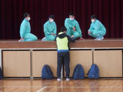 今日も温かく春のような日でした。2年生は立志式で自分の「志」を発表し手形を残しました。(上)ささゆり・ひまわり学級は、名古屋港水族館に校外学習に出かけました。(中)1年生は明日のダンス発表会に向けて最後の調整をしていました。(下)