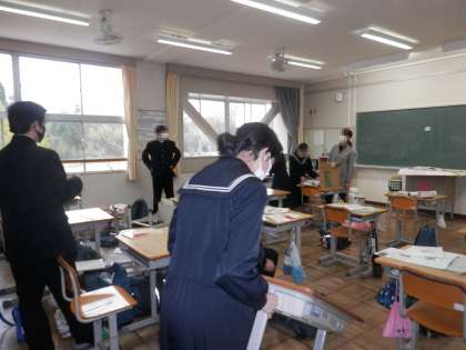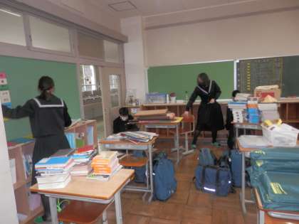 1・2枚目は2年生が教室の環境整備を行っている写真です。来年度使う下級生のためにロッカーや机を綺麗にしました。