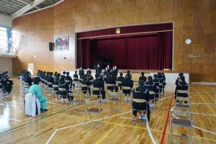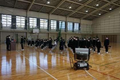 今日が今年度最後の登校日でした。みなさん無事、進級をすることができました。また、来年度の生徒会役員認証式がおこなわれました。