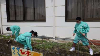 2枚目はささゆり・ひまわり学級の「畑の土づくり」の様子です。