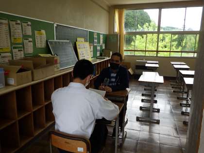 2年生は、英語の授業でALTの先生とスピーキングテストを行っています。