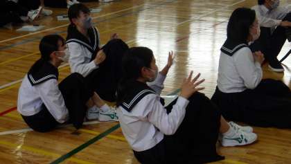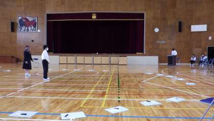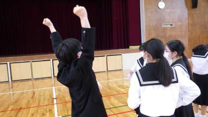 今日の5時間目に、5つの組団で下山中に関するクイズやゲームを行い、組団の色を決める結団式を行いました。各組団で協力しながら、楽しそうに会に参加していました。1枚目は前期生徒会で事前リハーサルをしている写真です。2枚目はゲームをしている最中の写真です。3枚目は結果発表されたときの写真です。