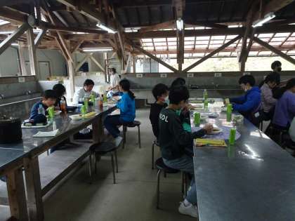 5月12日 宿泊学習1年 1日目 野外炊飯 おいしく昼食です