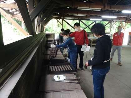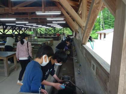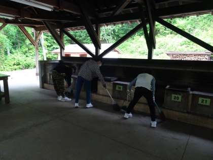 5月12日 宿泊学習1年 1日目 野外炊飯 片付けをしっかりやっています。