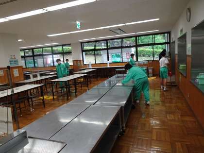 5月13日 宿泊学習1年 2日目 朝食後の掃除