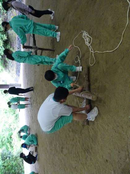 5月13日 宿泊学習1年 2日目 ロープワーク いろいろななロープの結び方を学びました。