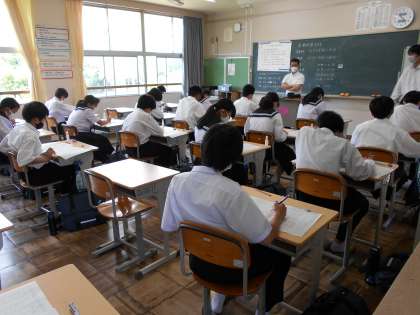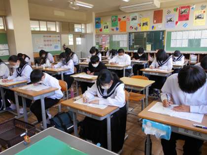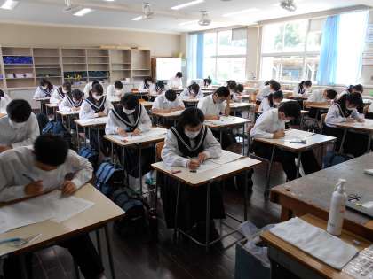 本日は2教科。各学年、一生懸命に問題と向き合っています。取組の成果が発揮できるといいですね。下の画像は、上から1,2,3年生の様子です。