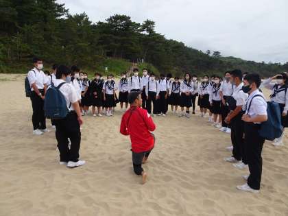 6月13日 修学旅行1日目 京丹後・琴引浜 鳴き砂体験、漂流物収集、海岸で海を楽しむ6月13日 修学旅行1日目 京丹後・琴引浜 鳴き砂体験、漂流物収集、海岸で海を楽しむ