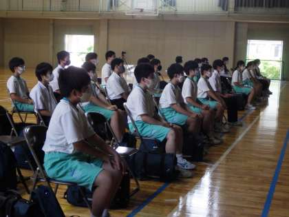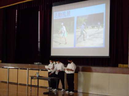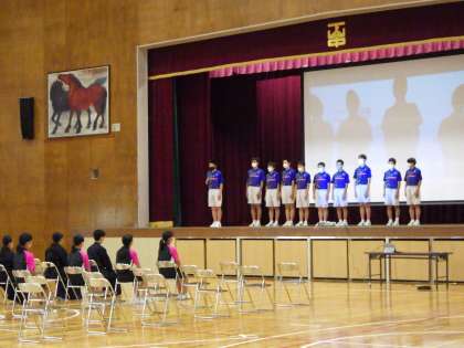 今日は6時間目に壮行会がありました。情報文化部による部活紹介と激励、各部活動の選手による意気込みの発表などを行いました。3年生は最後の大会となります。みんなで応援しています!!