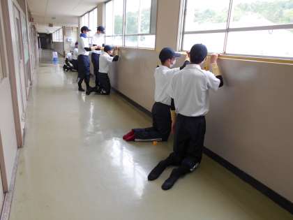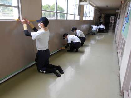 活動内容は、校舎の廊下の壁のペンキ塗りと、テニスコートの除草作業です。礼儀正しく、きびきびとした動きに、清々しさを感じました。