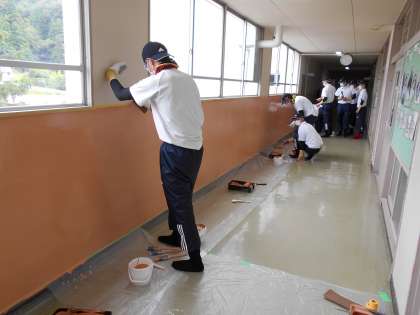 ていねいに塗ってくださいました。生徒たちから「きれい!」「すてきな色ですね」という声があがりました。