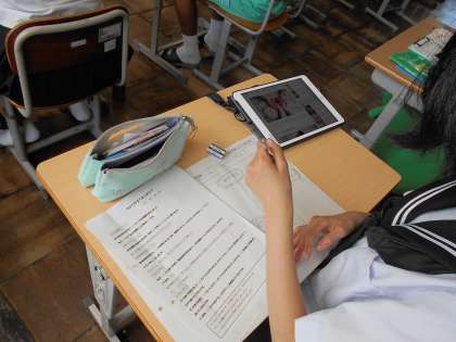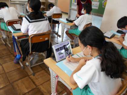 どの学年も、まとめや調べ学習に、学習用タブレットなどのICT機器を活用しています。