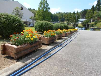 夏休みに入る生徒のみなさんを、マリーゴールドが応援しているようです。