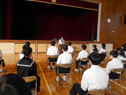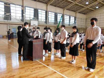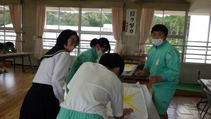 本日より後期の授業が始まりました。1時間目に後期の始業式と認証式が行われ、後期の学級代表や委員長の認証がありました。また、今週土曜日は文化祭です。各学級では展示と部隊発表の準備が大詰めです。授業後には団活動がありました。団アートの完成が間近です。