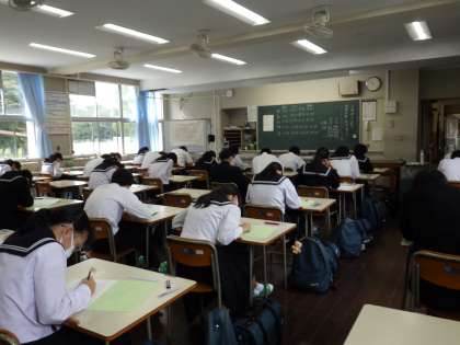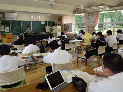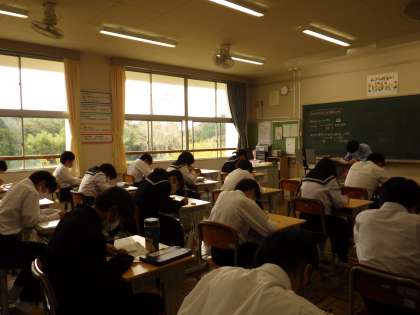 本日、3年生は第2回学習診断テストがありました。写真は2年生が社会、1年生は音楽の授業です。文化祭2日前、いろいろなことで頭の中はいっぱいですが、切り替えがしっかりとできる下山中生です。