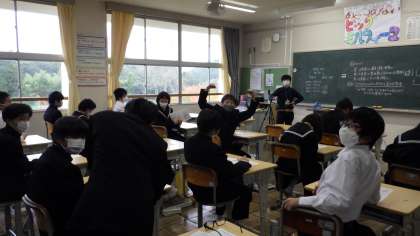 2,3年生は、足助警察署の方による薬物乱用防止教室がありました。授業の写真は、1年生が社会、2年生が英語です。明日は中間テストの範囲発表です。がんばりましょう。