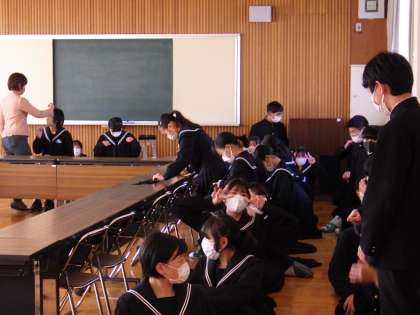 今日は、卒業アルバム用に個人写真撮影を6時間目にしていただきました。また、給食の時間から写真屋が来て、給食や清掃、授業、休み時間の様子も撮影してもらいました。3年生は「もう卒業の時期なのか。」と言っていたのが印象的でした。