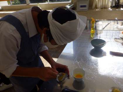 3時間目,4時間目に、ささゆり,ひまわり,すみれ合同で、調理実習を行いました。自分たちで育てたサツマイモを使って、自分の手でスイートポテトを作りました。