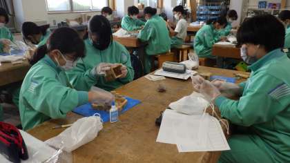 1,2年生は中間テスト、今日で終了です。。3時間目は2年生美術、寄木の箱を作っています。1年生の技術で、チューリップの球根を各々のポットに植えました。どちらも楽しみですね。3年生は、すみれ学級の様子です。テストはあと1日ですね。やり切りましょう。